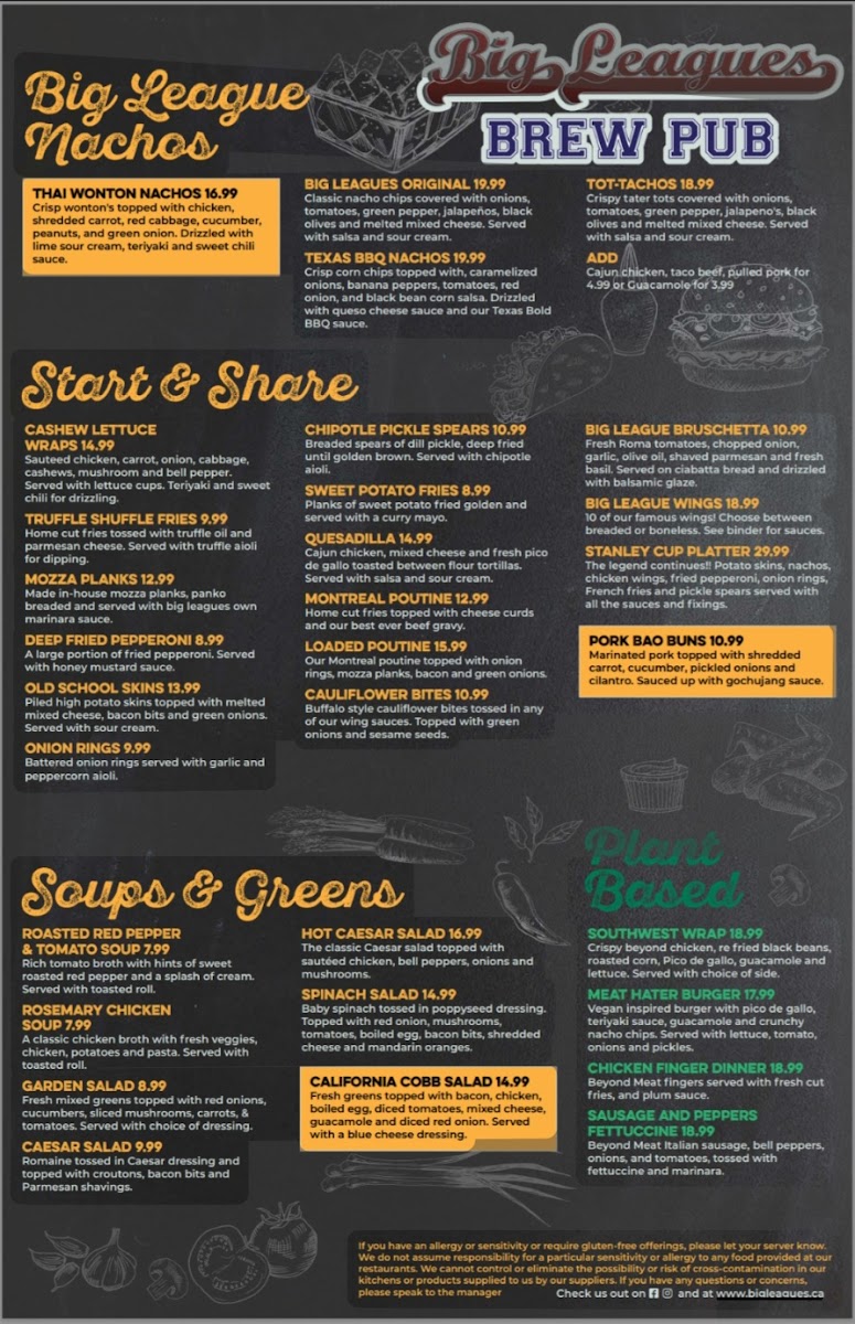 Welcome to Big Leagues Brew Pub- Bayer's Lake, a vibrant destination located in Beechville, NS, where sports and scrumptious food converge! As you step inside, the warm and inviting atmosphere instantly sets the tone for an unforgettable dining experience. The menu showcases an impressive variety of options, ensuring there’s something for everyone—from mouthwatering smash burgers to delectable vegan dishes.